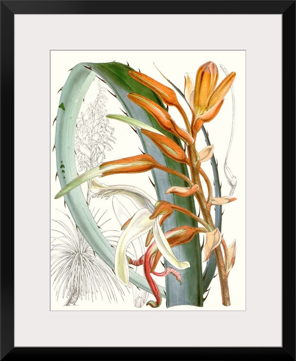 Art Curtis Art Sophisticated Jungle Drawing Florals Tropical Flowers Illustrations Botanical Illustrations Orange Wall Art Vintage Art