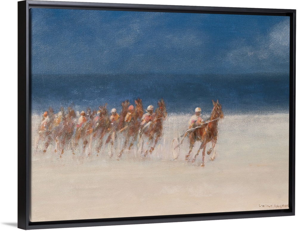 <p>Contemporary painting of a horserace on the beach in Brittany, France.</p>