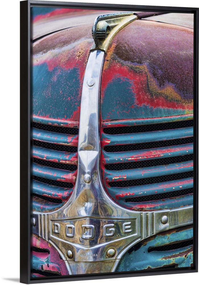 <p>A close up photo of weathered old parts of a vintage truck.</p>