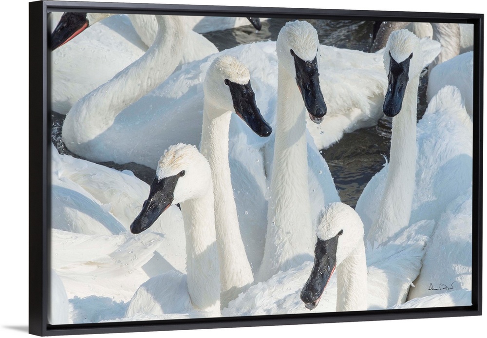 <p>Trumpeter Swans (Cygnus buccinator) enjoying a splashing good time in winter at Monticello, MN, USA.</p>