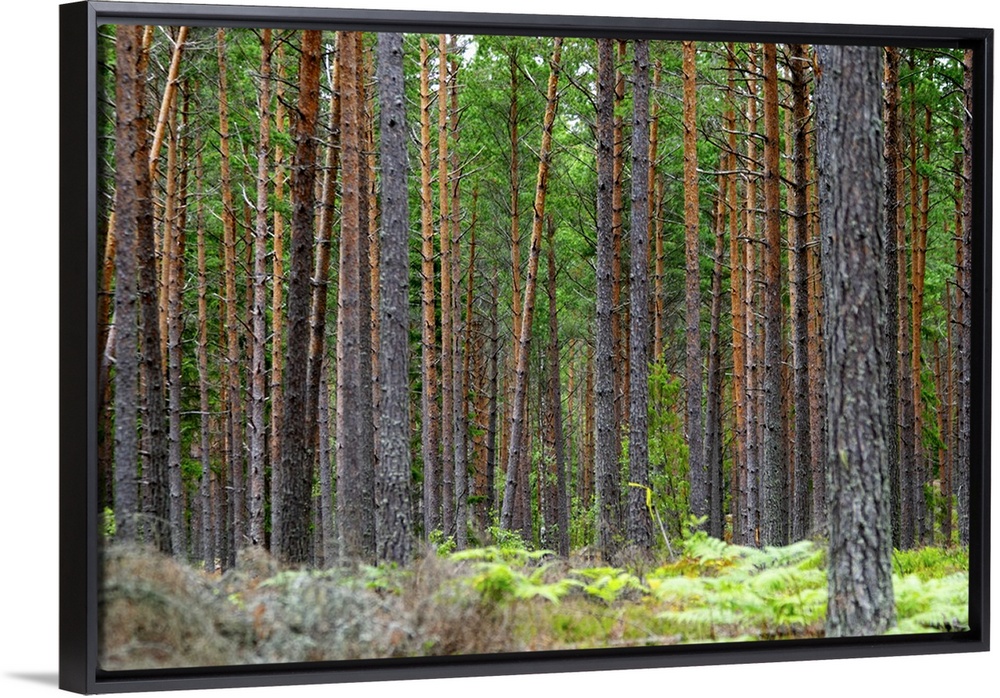 <p>Trunks of pine trees in a forest making a linear pattern. You can...t see the forest for all the trees... Smaland region. Sweden, Europe.</p>