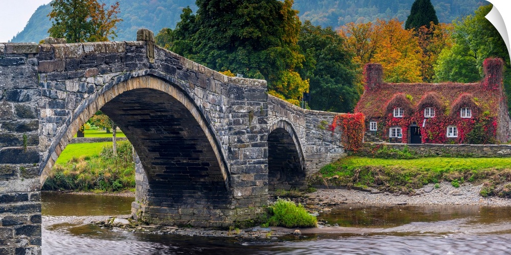 <p>UK, Wales, Conwy, Llanrwst, River Conwy, Inigo Jones Bridge, Tu Hwnt I'r Bont (Beyond The Bridge) Tearoom</p>