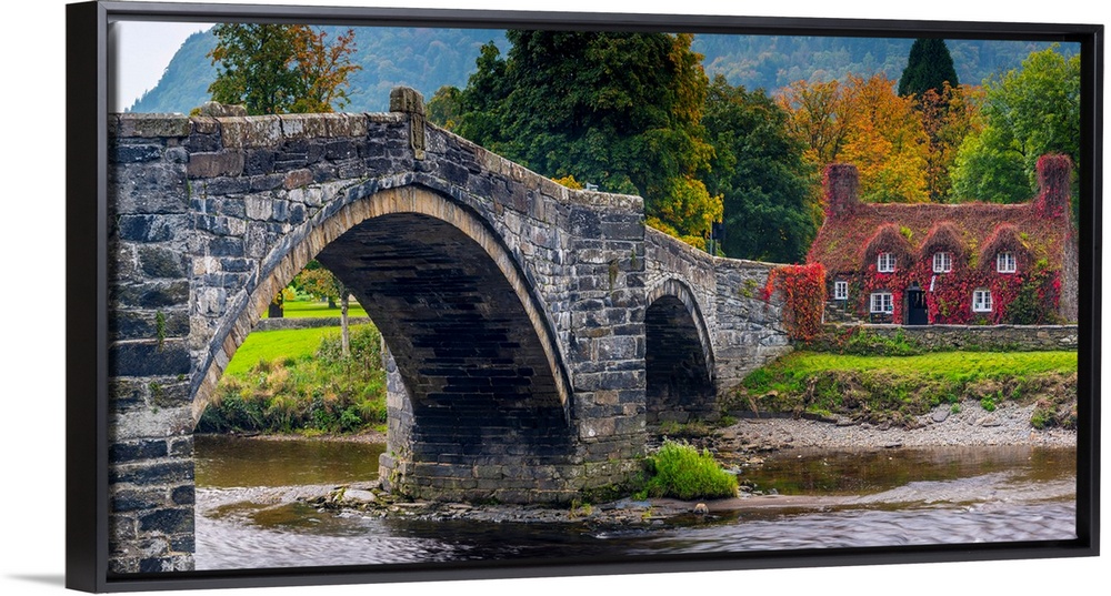<p>UK, Wales, Conwy, Llanrwst, River Conwy, Inigo Jones Bridge, Tu Hwnt I'r Bont (Beyond The Bridge) Tearoom</p>