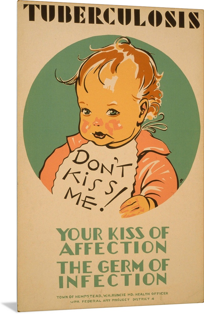 <p>Artwork about tuberculosis in children and methods of transmission, showing a child wearing a bib.</p>