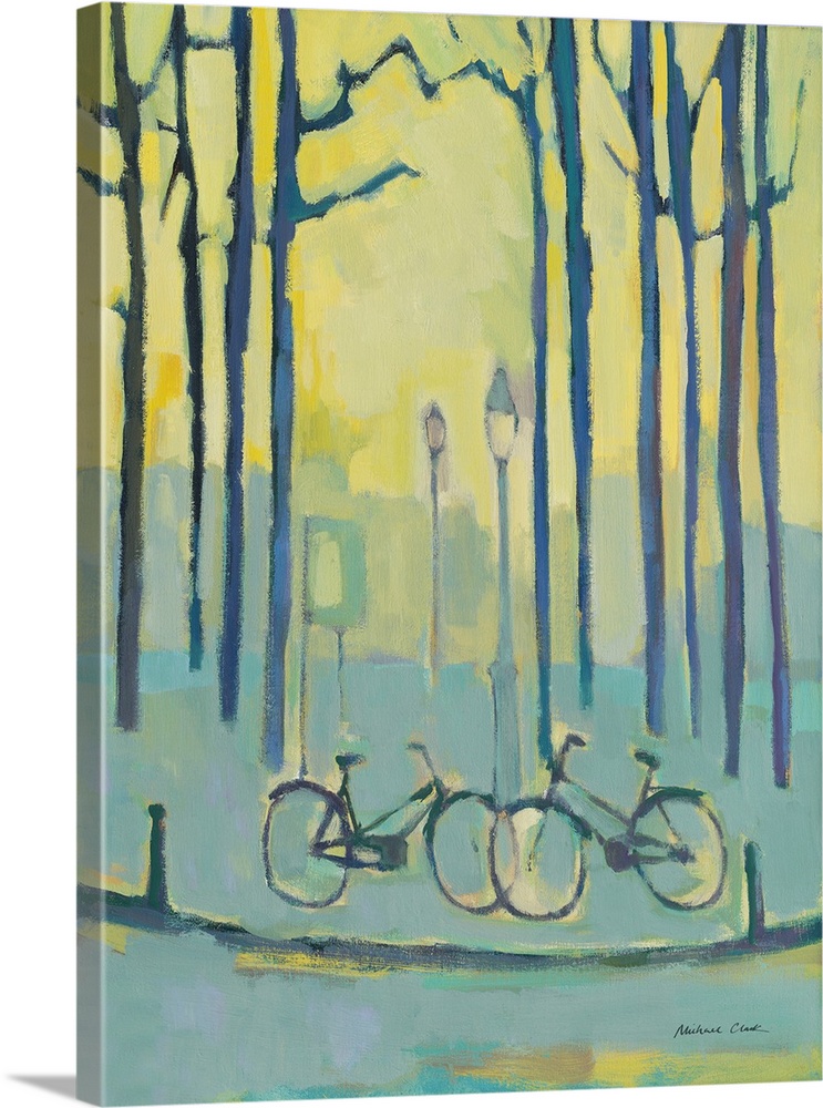 Art Blue Wall Art Michael Clark Contemporary Art Landscapes Trees Forest Painting Transportation Bicycle Yellow Wall Art