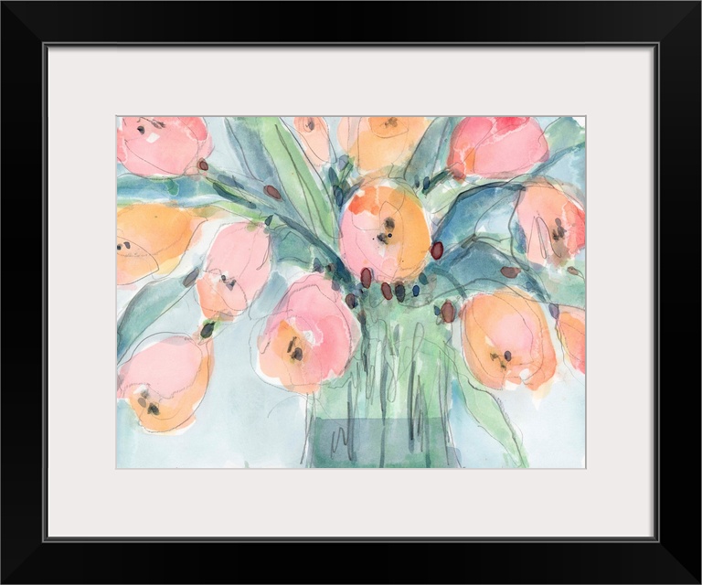 African-American Art Still Life and Florals Art Blue Wall Art Contemporary Art Plants and Flowers Samuel Dixon Florals Tulip Painting Pink Wall Art Watercolor