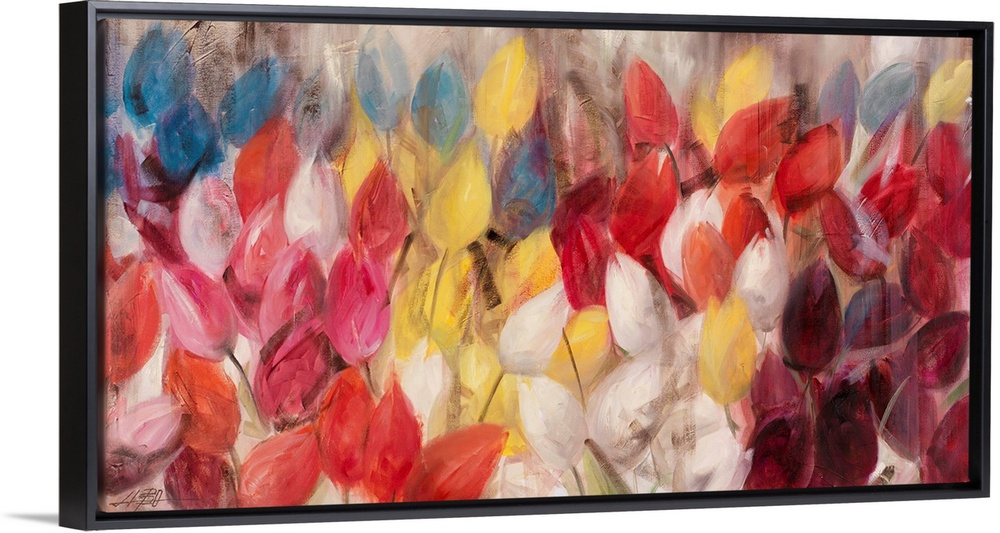 <p>Contemporary painting of a multitude of different colored tulips.</p>