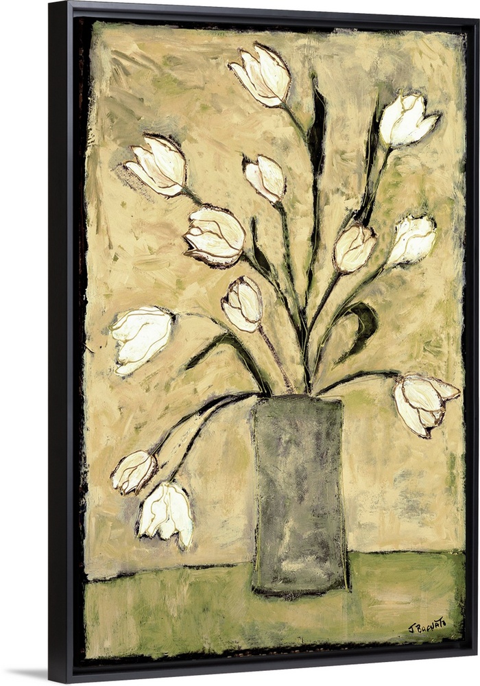 <p>Contemporary painting of a bouquet of white tulips over a light background.</p>