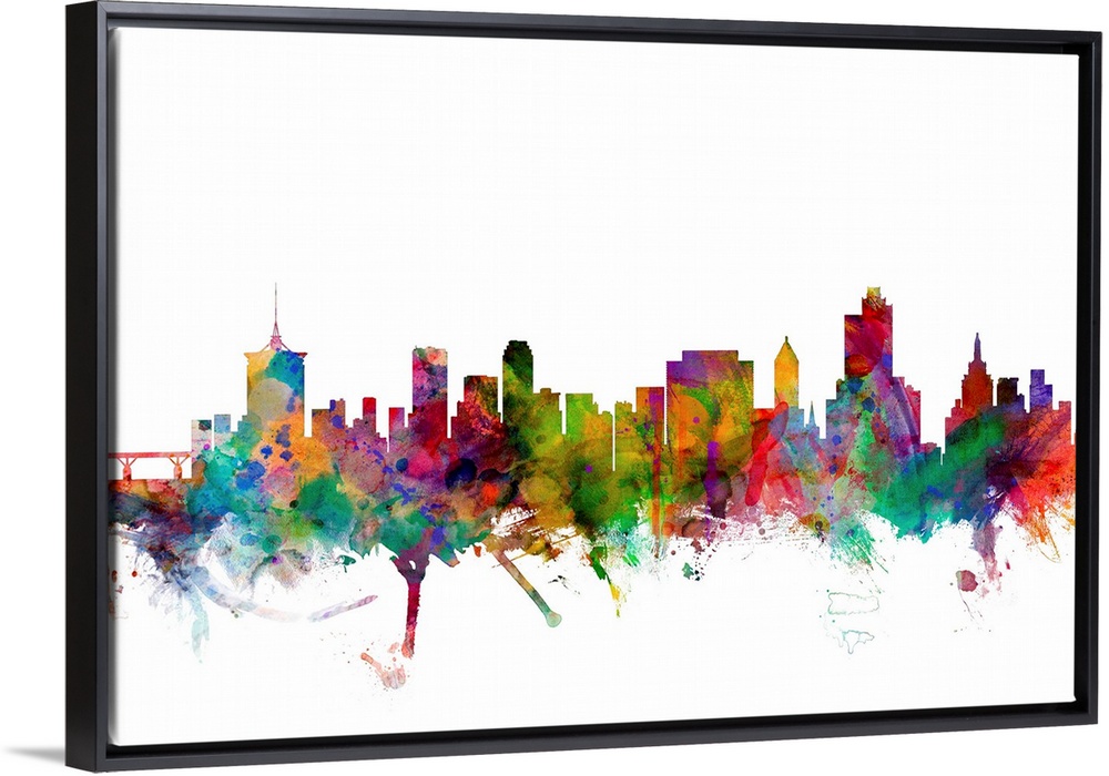 <p>Watercolor artwork of the Tulsa skyline against a white background.</p>