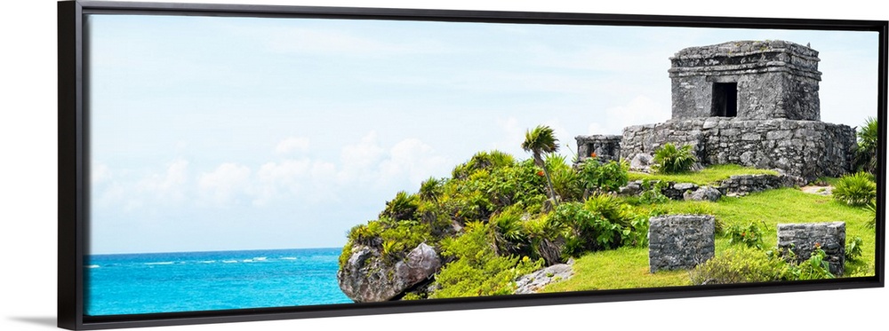 <p>Panoramic photograph a ancient Mayan ruins in Tulum, Mexico, right on the Riviera Maya, overlooking the beautiful Caribbean ocean. From the Viva Mexico Panoramic Collection.</p>