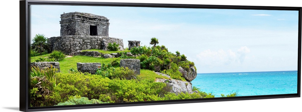 <p>Panoramic photograph a ancient Mayan ruins in Tulum, Mexico, right on the Riviera Maya, overlooking the beautiful Caribbean ocean. From the Viva Mexico Panoramic Collection.</p>