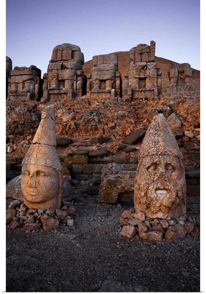 <p>Turkey, Eastern Anatolia, Nemrut Dagi, Nemrut Dag, Nemrut National Park, Nemrut Mountain, Tomb Sanctuary with Greek, Armenian and Iranian gods</p>