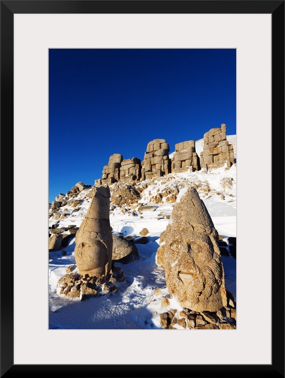 <p>Turkey, Eastern Anatolia, Nemrut Dagi (Mount Nemrut), UNESCO, Antiochos Sanctuary, eastern terrace, Head of Apollon and Zeus Oromasdes.</p>