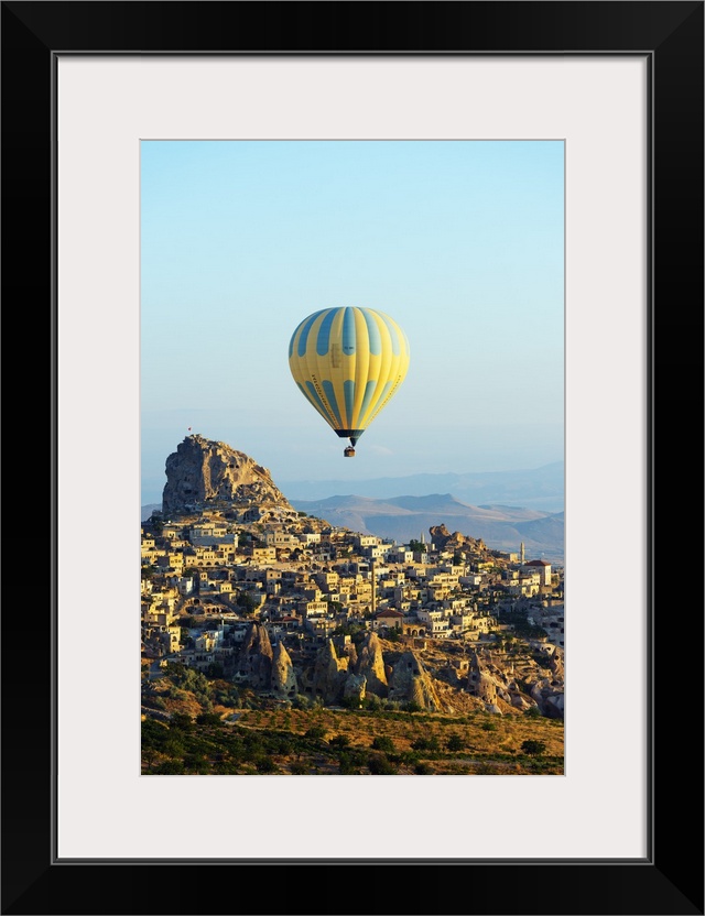 <p>Turkey, Central Anatolia, Cappadocia, balloon flight over Uchisar Castle near Goreme, UNESCO World Heritage site.</p>