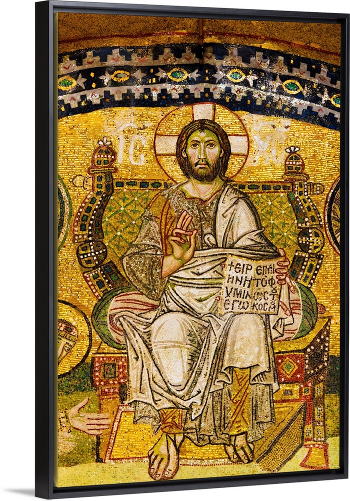 <p>Turkey, Istanbul, Mosaic of Leo VI kneeling before Jesus in Haghia Sophia Mosque</p>