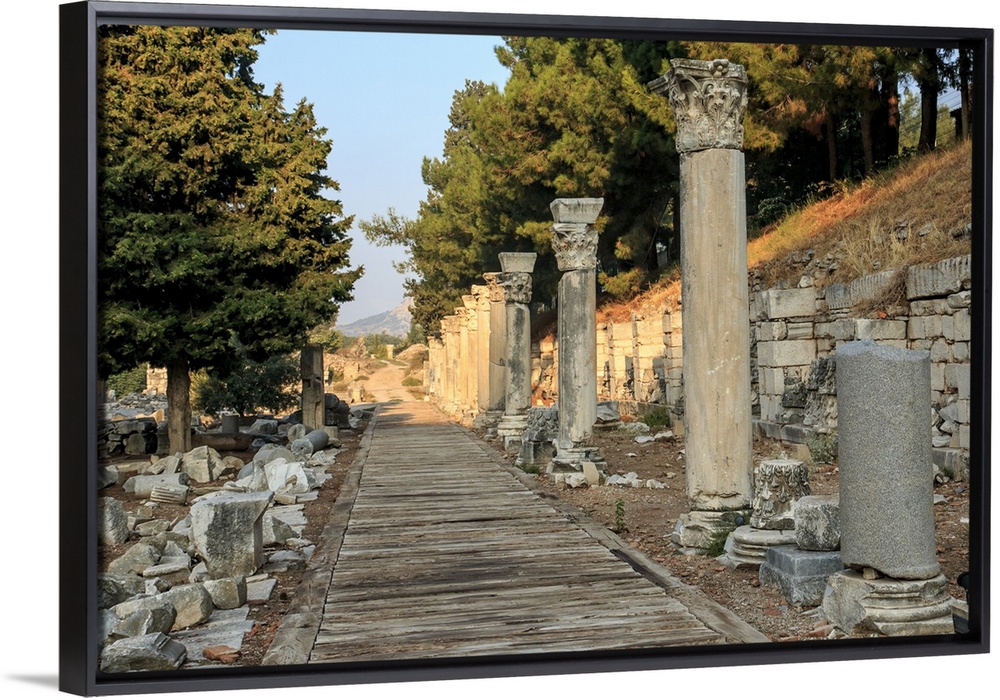 <p>Turkey, Izmir Province, Selcuk, ancient city Ephesus, ancient world center of travel and commerce on the Aegean Sea at mouth of Cayster River. columed Harbor Street near the Agora.</p>