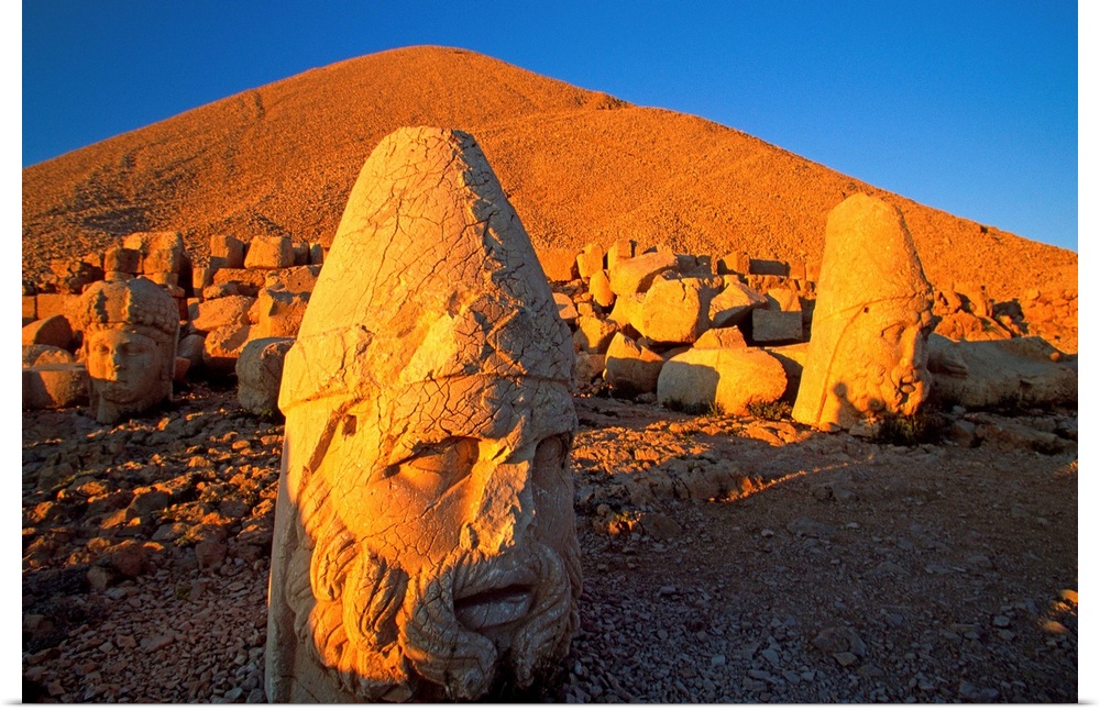 <p>Turkey, T..rkiye, Southeast Anatolia, Nemrut Dagi mountain, Antiochus I Tomb, the West Terrace, the head of Zeus Oromasdes</p>