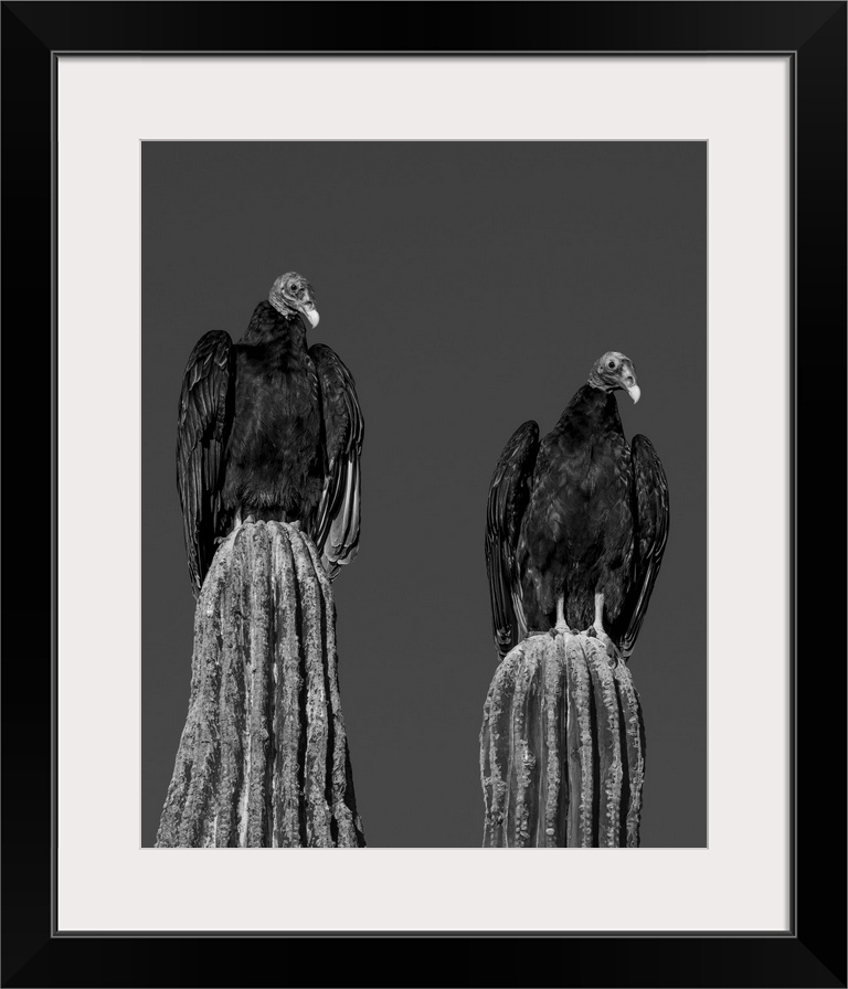<p>Turkey Vultures on Cardon Cactus, Cathedral Gorge State Park, Nevada, USA</p>