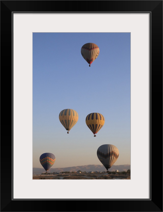 <p>Turkey,Anatolia,Cappadocia, Goreme. Hot air balloons flying above/among rock formations and field landscapes in the Goreme National Park, UNESCO World Heritage Site.</p>