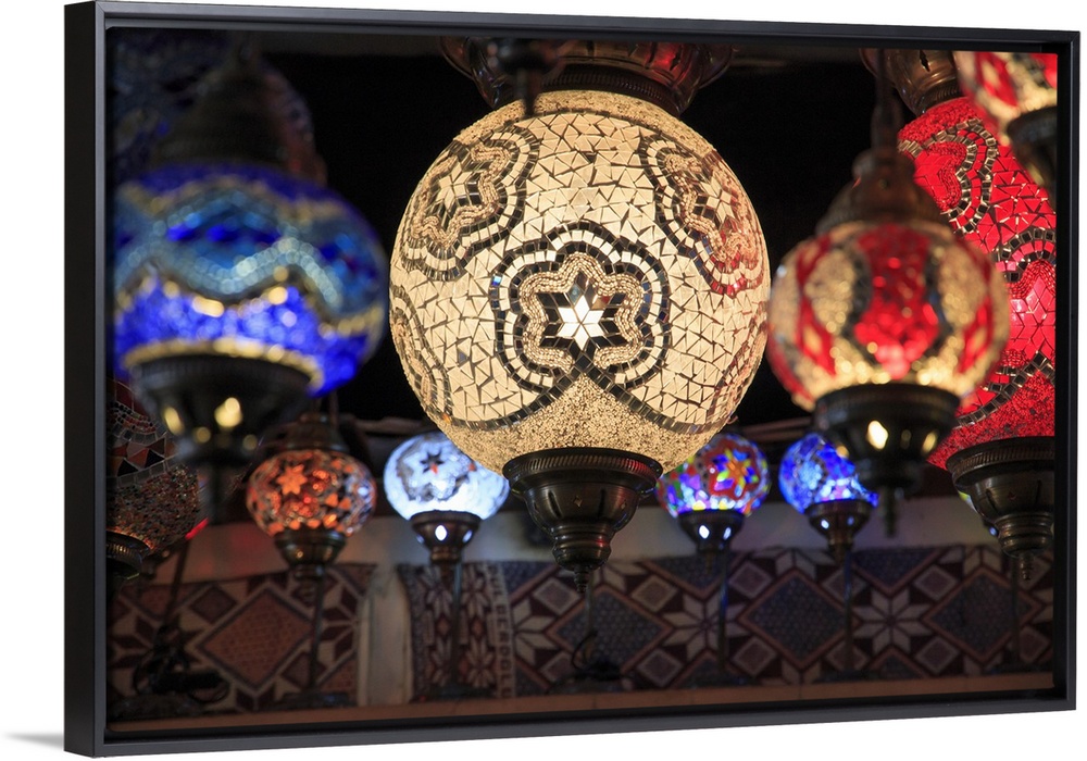 <p>Turkey,Central Anatolia,Nevsehir Province, Uchisar, colorful, glass mosaic lamps.</p>