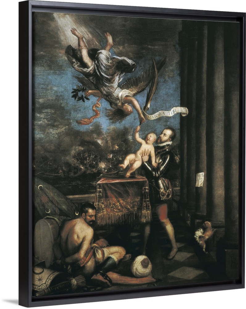 <p>TTITIA, Tiziano Vecello, also called (1490-1576). Allegory of the Battle of Lepanto. 1573 - 1575. A Turkish prisoner is in the foreground. Renaissance art. Cinquecento. Oil on canvas. SPAIN. Madrid. Prado Museum. -</p>