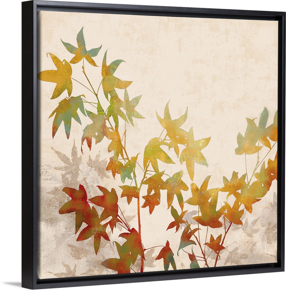<p>Square decor with silhouettes of multi-colored leaves on a cream background.</p>