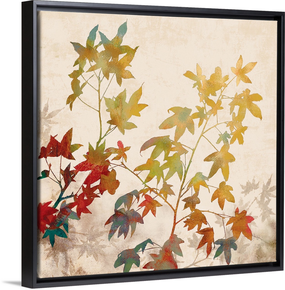 <p>Square decor with silhouettes of multi-colored leaves on a cream background.</p>