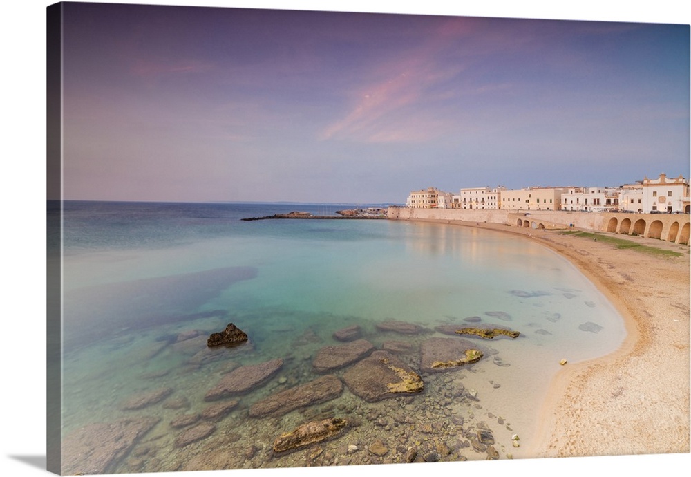 <p>Turquoise sea frames the beach and the medieval old town at sunset Gallipoli, Province of Lecce, Apulia, Italy</p>