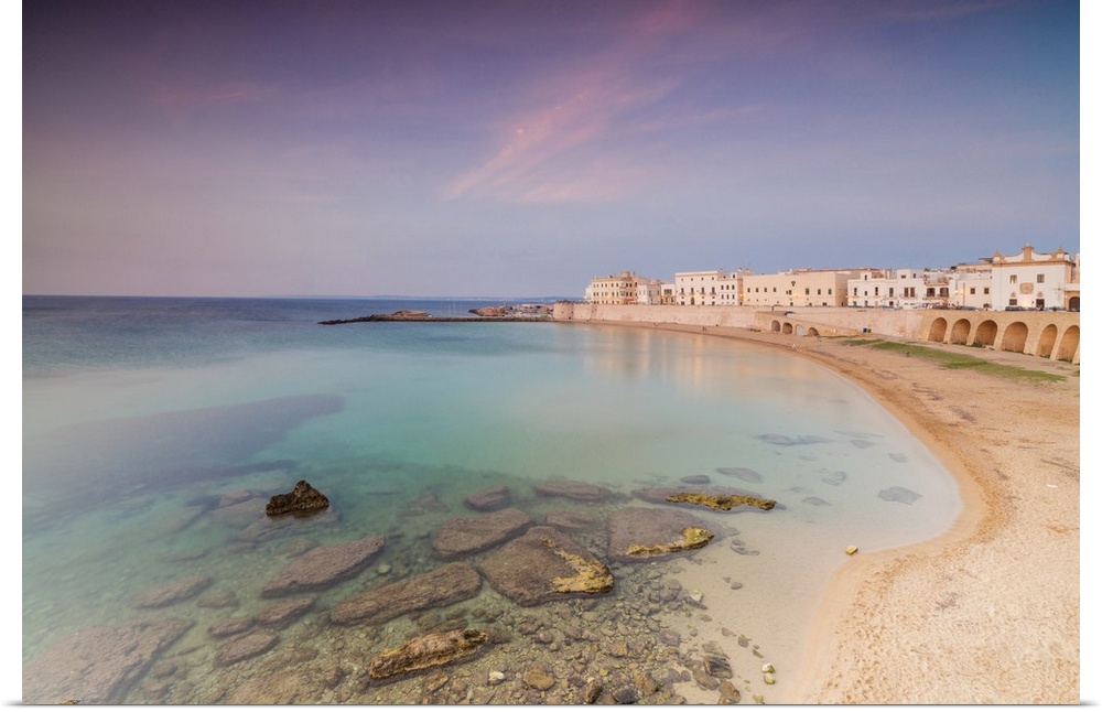 <p>Turquoise sea frames the beach and the medieval old town at sunset Gallipoli, Province of Lecce, Apulia, Italy</p>