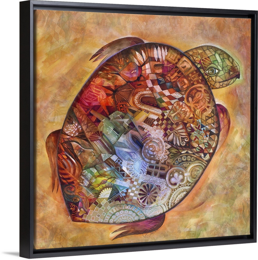 <p>Watercolor painting of a turtle with floral patterns on its shell.</p>