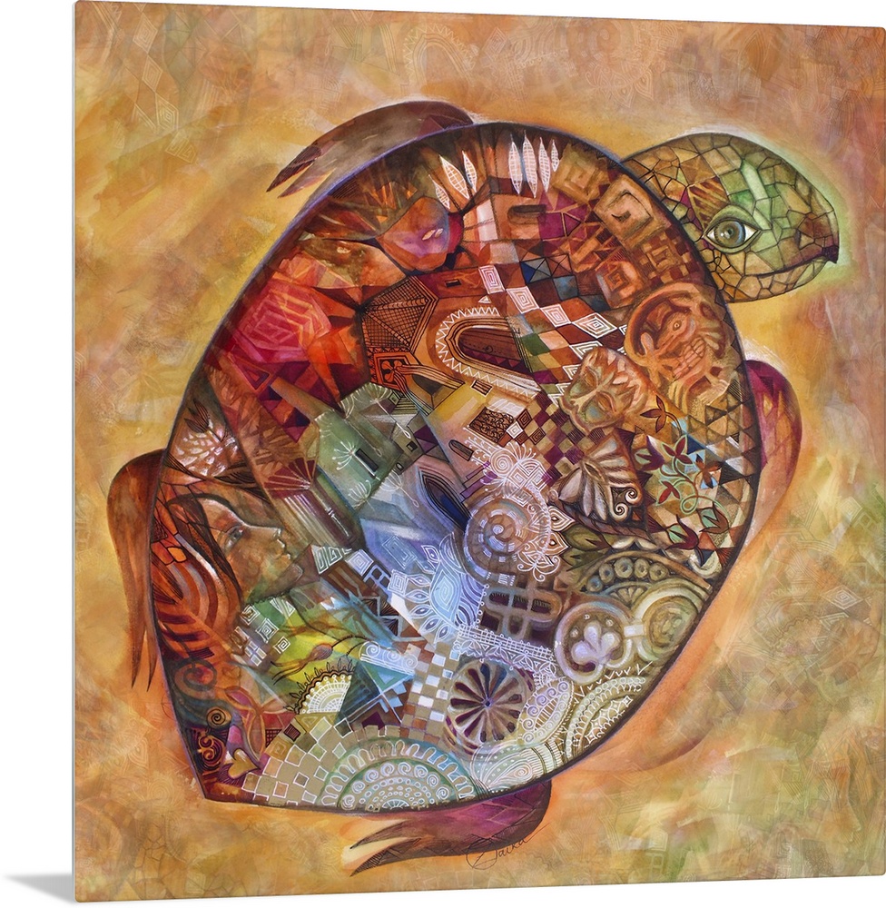 <p>Watercolor painting of a turtle with floral patterns on its shell.</p>