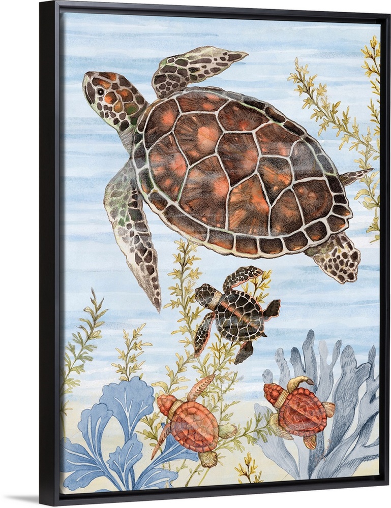 <p>A colorful underwater scene with a charming turtle family is great for coastal decor.</p>
