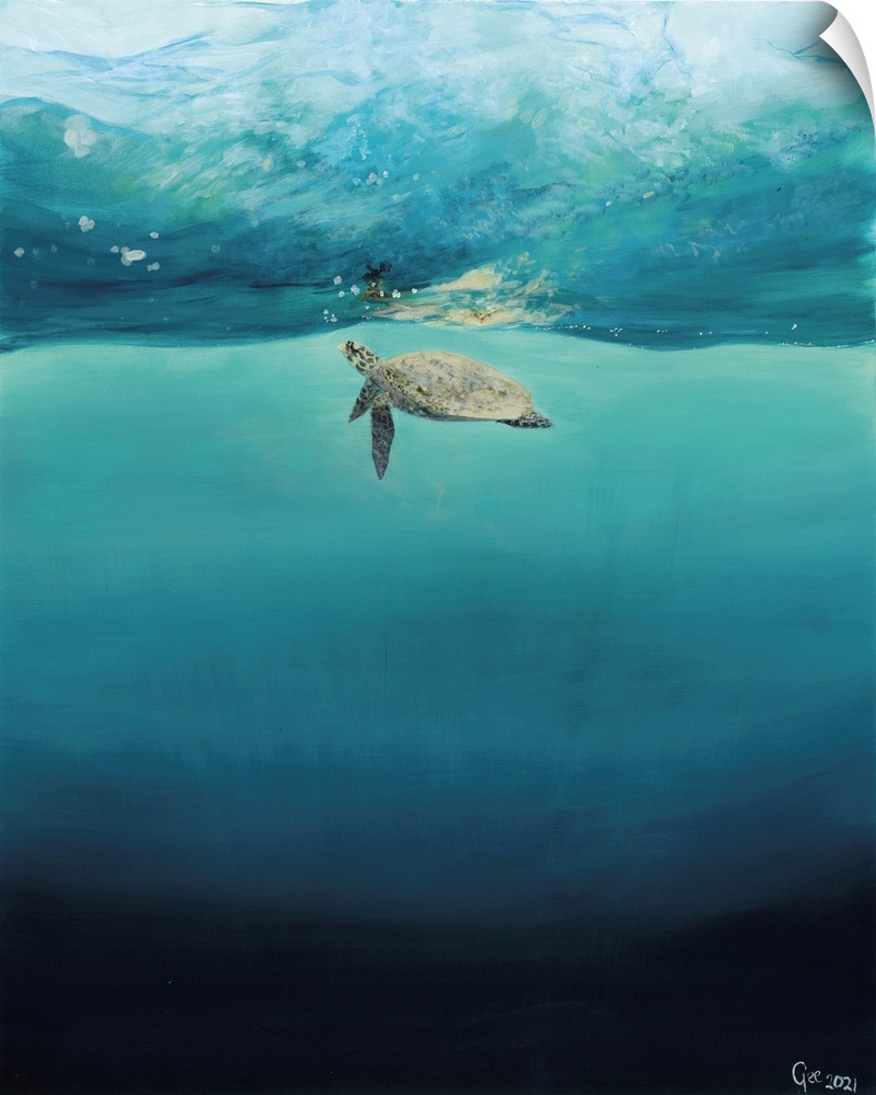 Art Coastal Blue Wall Art Contemporary Art Painting Wildlife Marine Life Turtle