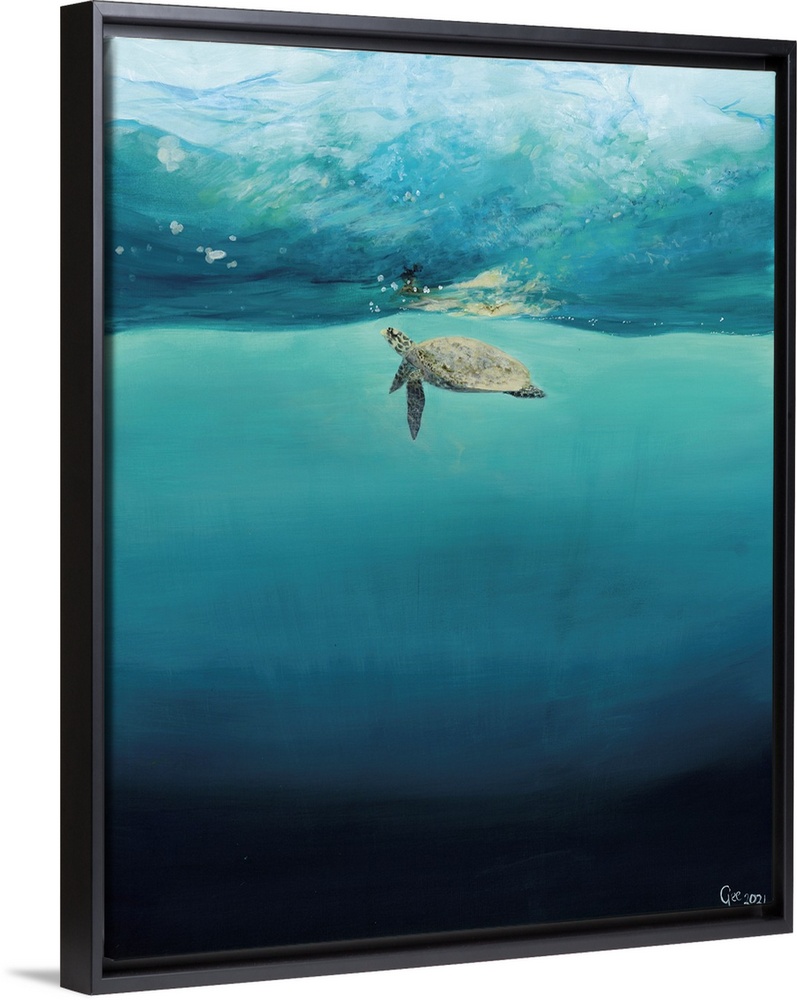 Art Coastal Blue Wall Art Contemporary Art Painting Wildlife Marine Life Turtle