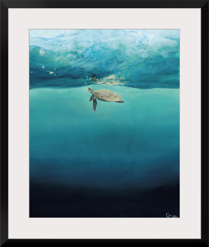 Art Coastal Blue Wall Art Contemporary Art Painting Wildlife Marine Life Turtle
