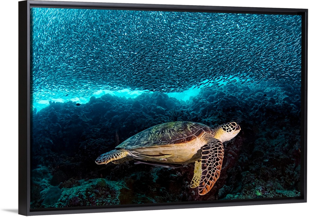 <p>Turtle and sardines at Panagsama, Moalboal, Philippines.</p>
