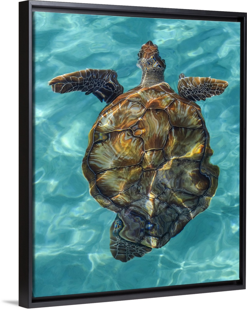 <p>Turtle swimming in the crystal clear, turquoise water of the Caribbean; Caribbean</p>