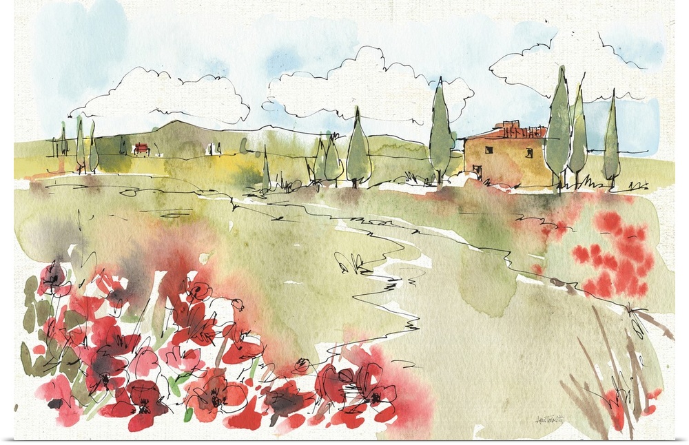 Art Landscapes Decorative Art Poppy Landscapes Painting Tuscany Anne Tavoletti Watercolor