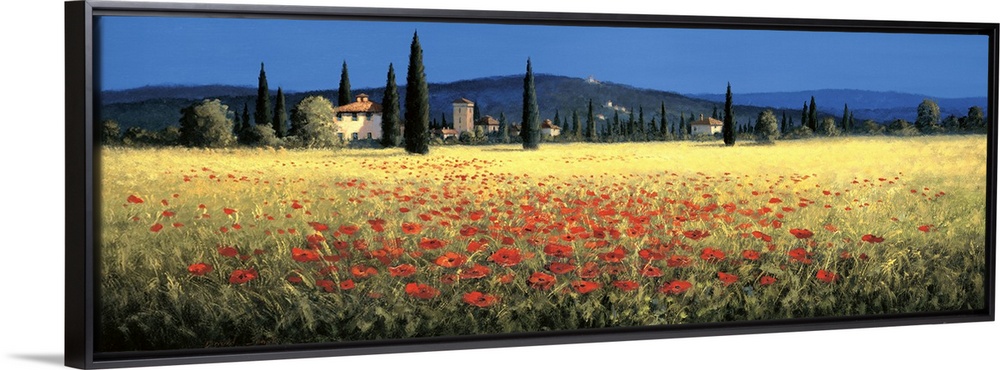 <p>Contemporary artwork of a field of red poppies in Tuscany.</p>