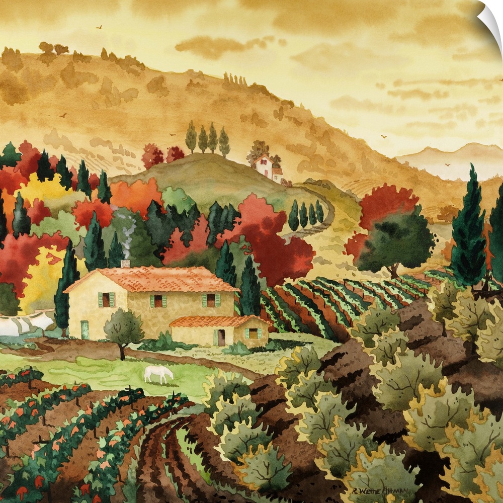 Robin Altman Houses Art Decorative Art Fall Landscapes Vineyard Painting Italy Tuscany
