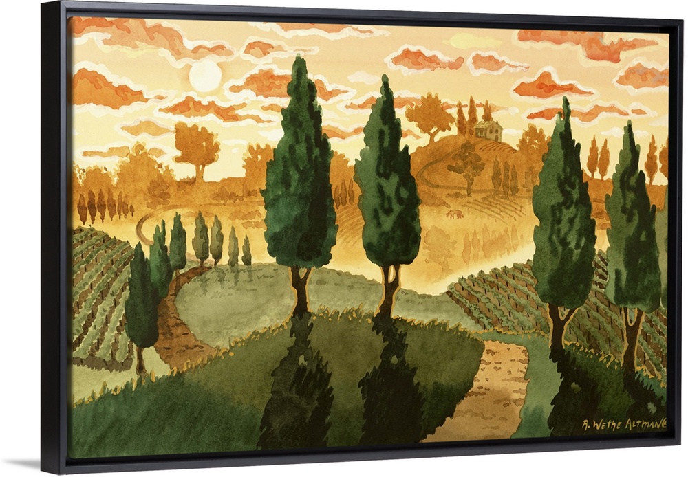 Robin Altman Art Traditional Decorative Art Landscapes Countryside Sunset Trees Painting Italy Tuscany