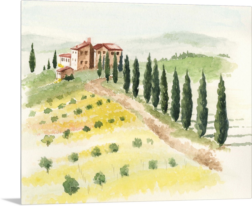 <p>This watercolor artwork illustrates the beauty and simplicity of a Tuscan countryside with contrasting warm and cool colors in harmony.</p>