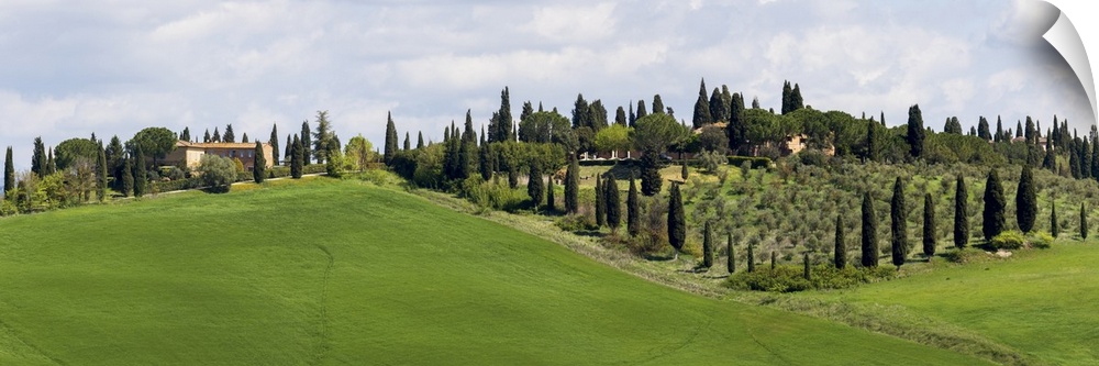 <p>Tuscany landscape with farm, cypress and olive trees. Tuscany, Italy.</p>