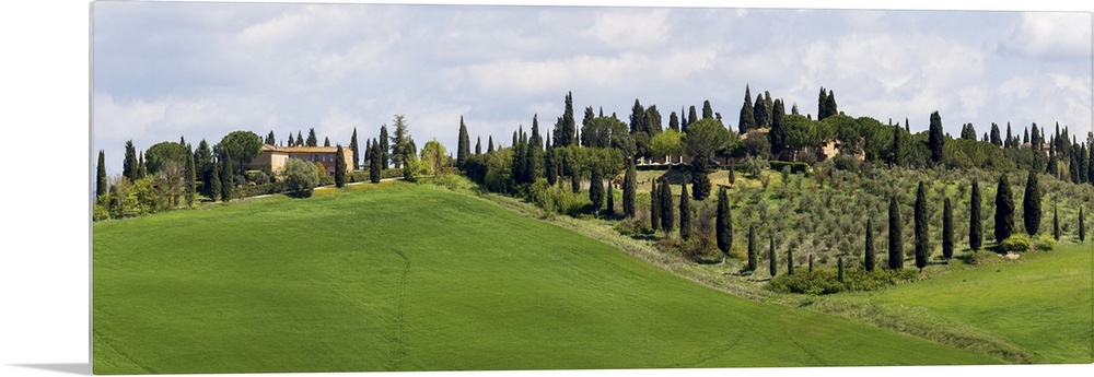 <p>Tuscany landscape with farm, cypress and olive trees. Tuscany, Italy.</p>