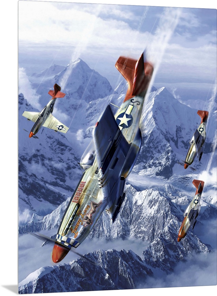 <p>Tuskegee airmen of the 332nd fighter group flying near the Alps in their P-51 Mustangs.</p>