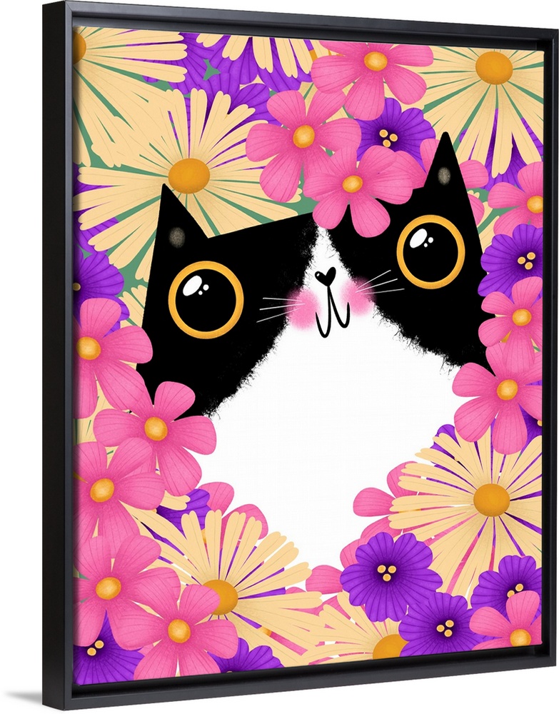 Art Children's Art Girls Room Gabriela Avila Decorative Art Florals Graphic Art Pink Wall Art Wildlife Cat
