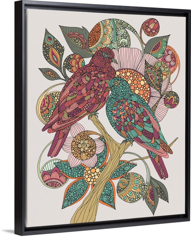 <p>Stunning illustration of two Turtle doves sitting on a branch surrounded by leaves and paisley swirls. Illustrated in intricate detail and colored in jewel tones.</p>