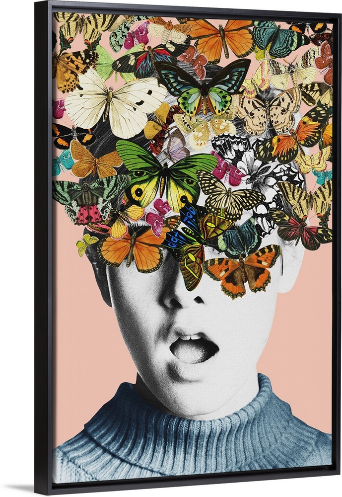 Art Glam Bathroom Art Glam Bathroom Tweens & Teens Contemporary Art Figurative Mixed Media Art People Portraits Frida Floral Studio Surrealism Surrealist Collage Insect and Arachnid Butterfly