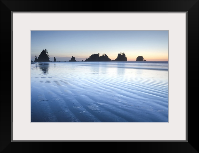 <p>Twilight over Shi Shi Beach, sea stacks of Point of the Arches are in the distance. Olympic National Park, Washington State.</p>