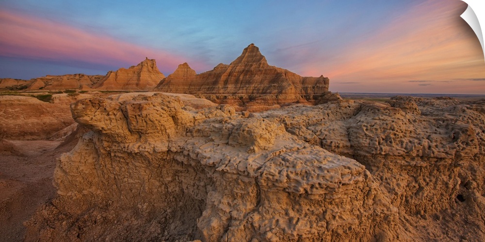 <p>Twilight over the Hoodoos and rock formations in Badlands National Park, South Dakota</p>